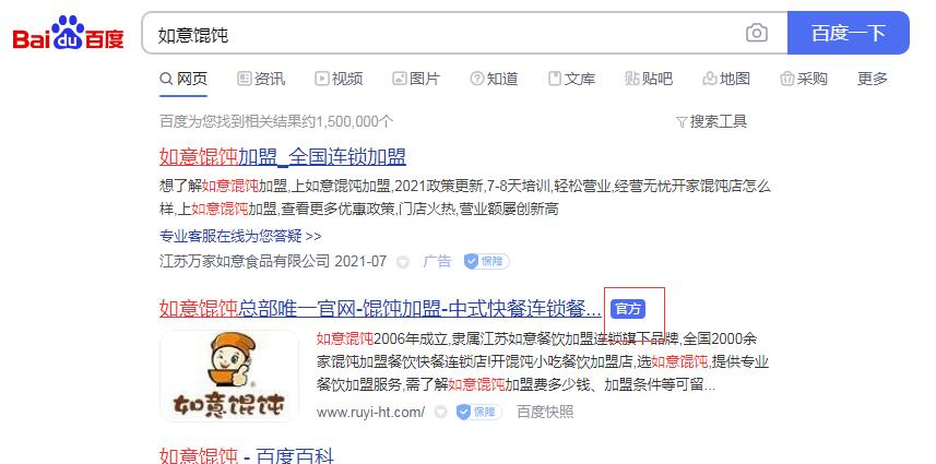 如意餛飩請認準我們的官網,如果您百度一下,就會有個“官方”的字眼,其他的一概不要輕信!