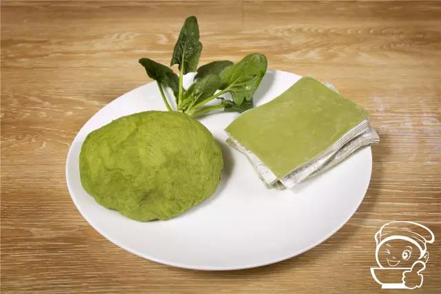 將雞蛋打入面粉中,開始和面,和面的過程中逐步倒入榨好的菠菜汁。