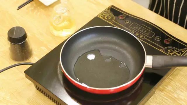 ④開始進入煎餛飩階段,首先在平底鍋倒入適量的色拉油,量不需要多,能鋪平鍋底就行